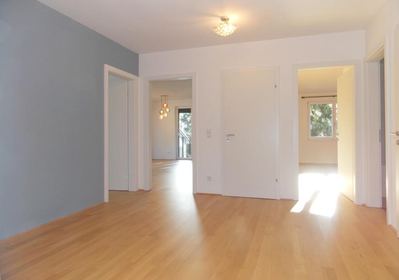 Ausstattung: Fußbodenheizung, Weitzer Fichtenparkett, Haus-Zentralheizung Gas, Kunststoff-Alu-Fenster mit Isolierverglasung, elektrische Raffstores, komplette Maßeinbauküche (Ceranherd, Elektrobackrohr, Dunstabzug, Geschirrspülmaschine, Kühl-Gefrierkombination), Bad 1 (bodengleiche Dusche, Handtuchheizkörper, WC, Waschmaschinenanschluss), Bad 2 (Wanne, Doppelwaschbecken, großer Spiegel), WC separat mit Handwaschbecken, Wohnungseingangstüre Sicherheitsstufe WK3, Gegensprechanlage mit Video-Screen, Brandmelder.